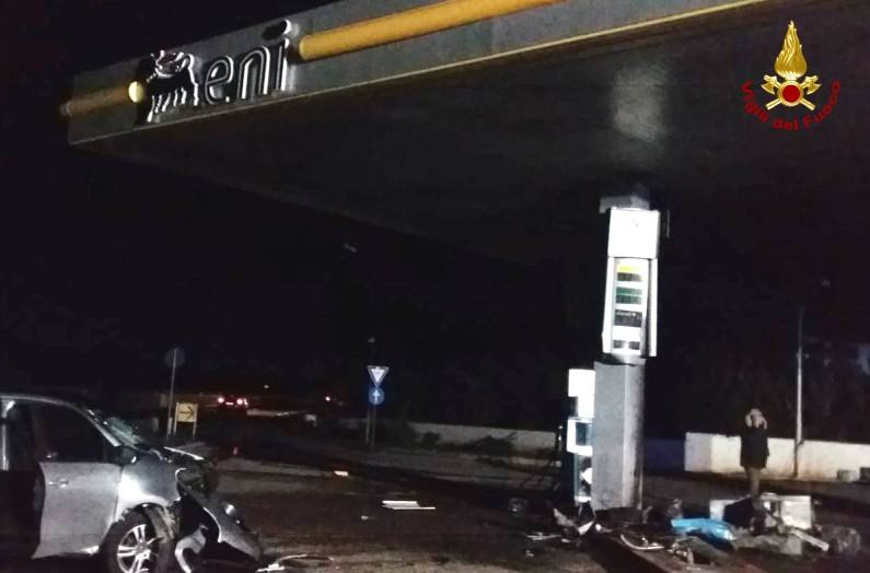 Tragedia sfiorata nella notta in una stazione di servizio sulla ss16, all’altezza di Monopoli Sud, dove un’auto si è schiantata contro una colonnina, sradicando la pompa della benzina. Sul posto sono intervenuti i Vigili del fuoco per soccorrere la donna e spegnere l’incendio creatosi dopo l’impatto. Fortunatamente solo ferite lievi e tantissimo spavento per la donna al volante.