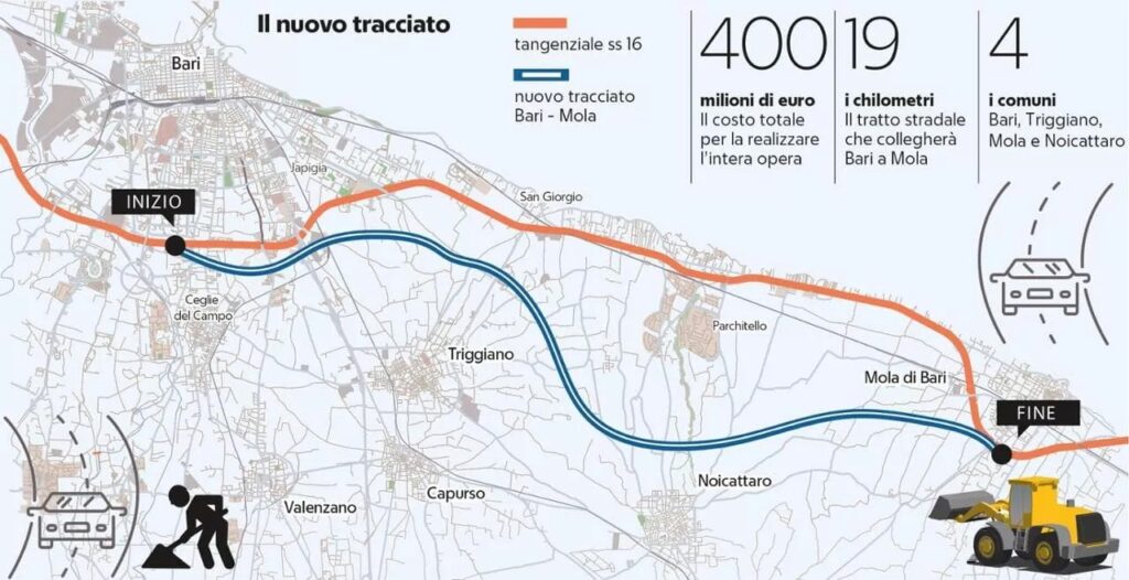 Nuova statale 16, pronta entro il 2028: tre corsie per carreggiata fino a Mola
