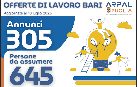 Nel report – consultabile al link report BA – 10/07/2025 ( https://tinyurl.com/yp52umwj ) è indicato il titolo di ciascun annuncio, il numero identificativo dell’offerta di lavoro, il profilo ricercato, il CPI di riferimento cui rivolgersi per approfondimenti e informazioni, il link all’offerta specifica.