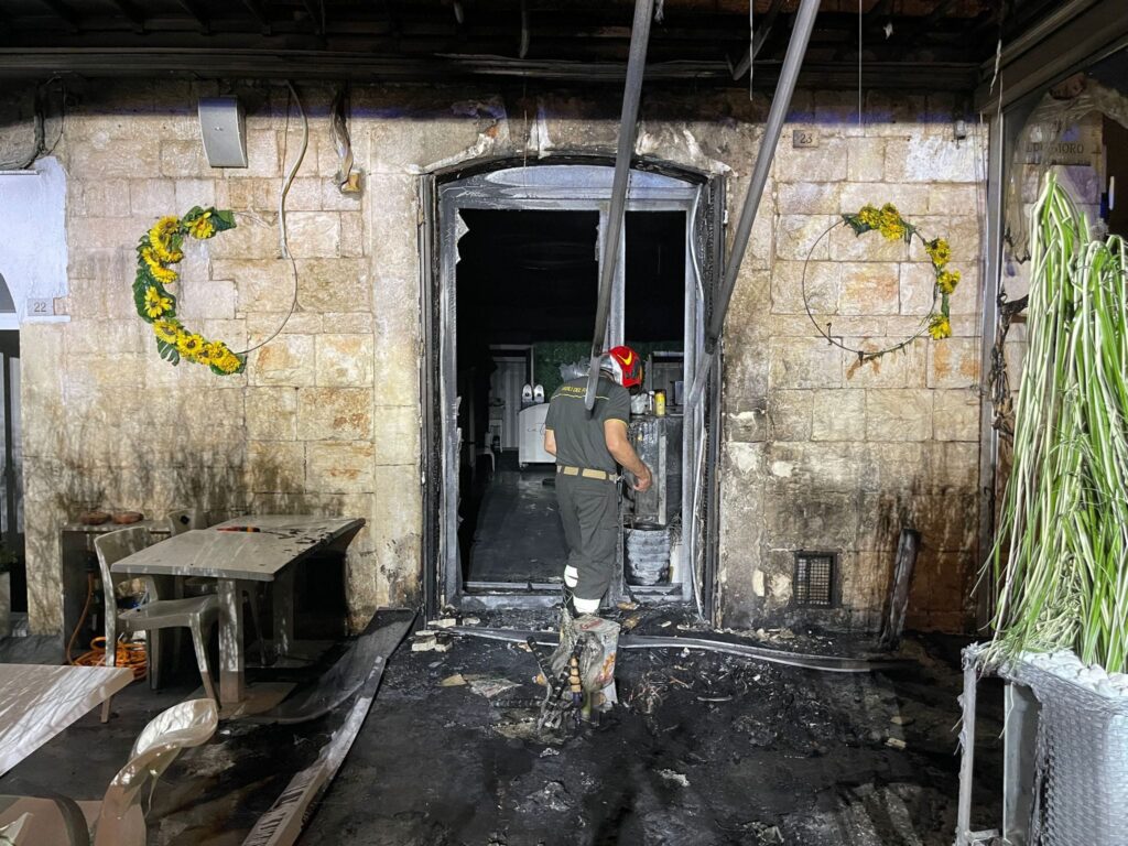 Attimi di paura a Bitritto dove il bar Intenso, situato in pieno centro, è andato in fiamme nella notte. Secondo le prime ricostruzioni, ignoti hanno sfondato la porta dell’attività attorno all’1.30, introdotto una moto nei pressi dell’ingresso e appiccato il fuoco. Sul posto sono intervenuti i Vigili del Fuoco, ingenti i danni (foto di BIT Live).