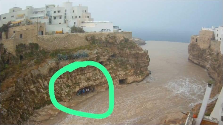 Alcune persone sono rimaste bloccate a Polignano nella famosa caletta sotto il ponte a Lama Monachile. Viene da chiedersi come mai hanno scelto di avventurarsi in tale pericolo nonostante le previsioni meteo che lasciavano pochi dubbi.