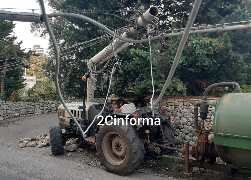 Perde il controllo del mezzo e si schianta prima su un muretto a secco e poi sul palo telefonico. È accaduto sulla strada comunale San Cataldo a Putignano ieri pomeriggio intorno alle 17. L’uomo di 60 anni stava guidando il suo trattore quando ne ha perso il controllo. Al momento non si conoscono le condizioni del 60enne.