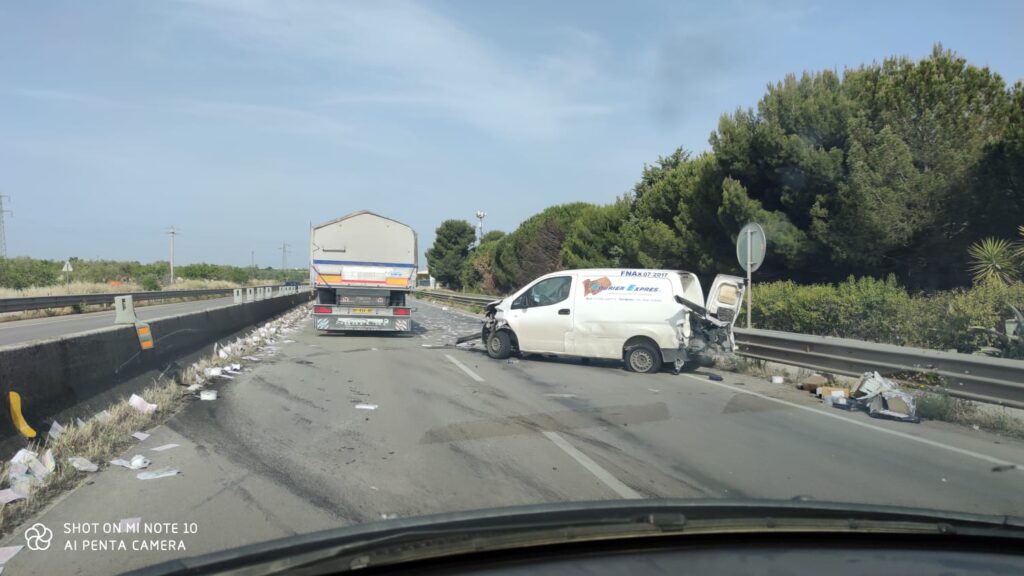 Il mezzo, usato da un corriere espresso, a causa dell’impatto ha perso l’intero carico. La statale, infatti, è stata invasa da fogli, rulli e volantini. Il mezzo è distrutto nella parte anteriore, al momento non si conoscono le condizioni del conducente.