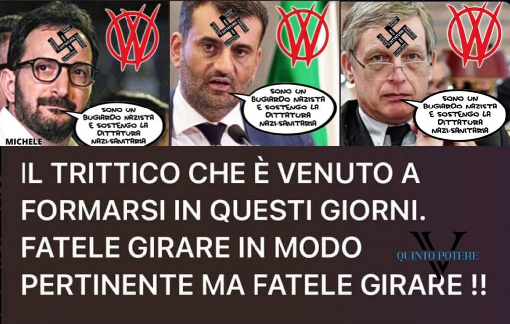 “Sono un bugiardo nazista e sostengo la dittatura nazi – sanitaria”. Sono queste le parole diffamatorie, con tanto di svastica, scritte sui volti del sindaco di Bari e presidente Anci, Antonio Decaro, il candidato alle primarie del Pd, Gianni Cuperlo, e sul volto del consigliere regionale Michele Mazzarano. Una foto diffusa via Telegram e che dal simbolo con le due V cerchiata fa intendere sia stata pensata e fatta da un gruppo no vax. La diffusione della foto è avvenuta a poche ore dalla presa di posizione dei rappresentanti del Pd che condannavano le minacce e gli atti di vandalismo perpetrati all’indirizzo della Cgil di Bari e della sua segretaria. Il consigliere Mazzarano lo ha reso noto con un post su Facebook. “Dopo la Cgil – scrive Mazzarano – oggi tocca al Pd entrare nel mirino dei Vi-Vi che inondano la rete con svastiche e messaggi diffamatori come quelli che nei giorni scorsi hanno sfregiato la segretaria della Cgil di Bari Gigia Bucci. È evidente la matrice neofascista e squadrista che si nasconde dietro questi sedicenti ‘no vax’ e complottisti della domenica. Chi invece resta in silenzio o liscia il pelo, con atti di governo, a posizioni negazioniste e antiscientifiche, diventa corresponsabile e complice”. Elly Schlein, deputata e candidata alla segreteria del Pd ha aggiunto: “”Sono irricevibili le minacce indirizzate via Telegram a Gianni Cuperlo, Antonio Decaro Gigia Bucci e Michele Mazzarano. A loro va la mia totale solidarietà . La violenza di matrice no-vax e neofascista non è meno grave solo perché ci si nasconde vigliaccamente dietro una tastiera”.
