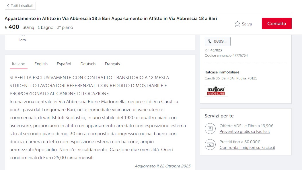 Continue readingQuattrocento euro di affitto per una casa di soli 30 metri quadri e persino senza riscaldamento. Siamo in via Abbrescia, una via del quartiere Madonnella a Bari