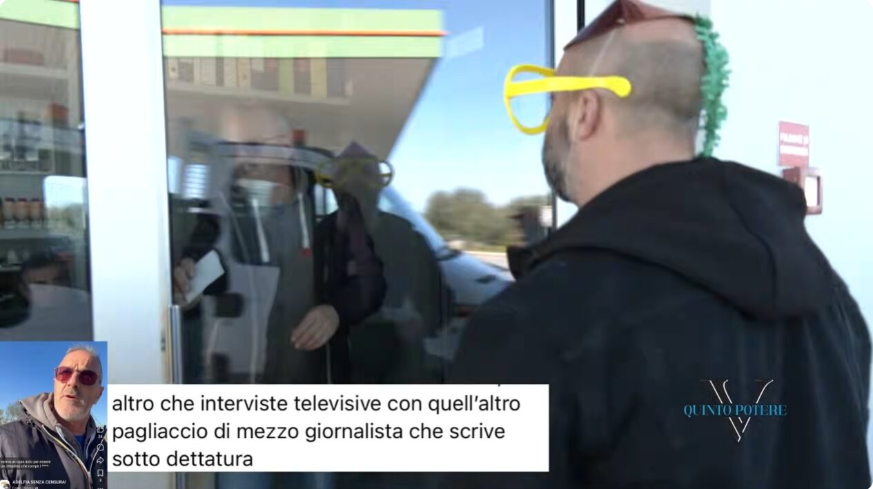 Antonio è tornato qualche giorno fa alla stazione di servizio di Picicci travestito da clown. Con nostra sorpresa, a differenza dell’altra volta, si è rifugiato all’interno del fabbricato della stazione di servizio, lasciando che il suo socio rispondesse alle domande.