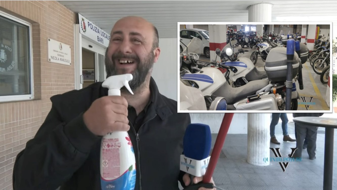 Moto abbandonate nel garage del comando della Polizia Locale di Bari, piene di polvere e ragnatele. Volevamo risposte dal comandante Palumbo, ma come sempre con noi non vuole parlare.