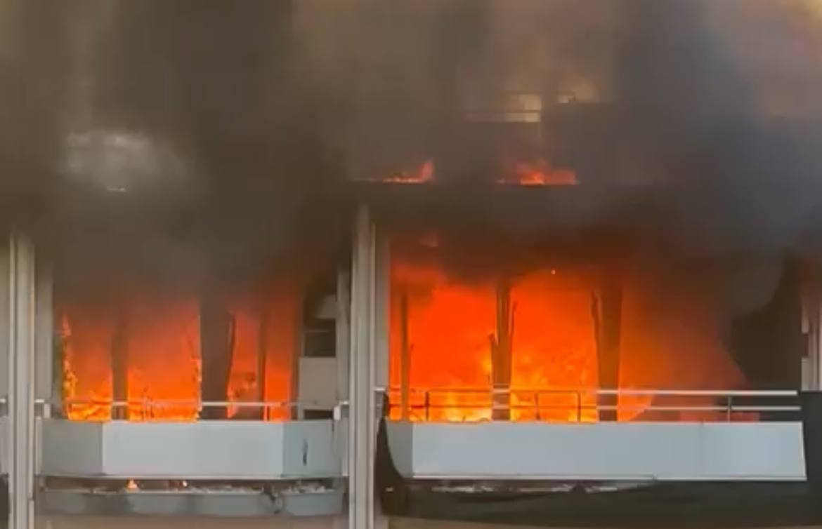 Non si sa ancora se ci siano vittime o feriti. Le fiamme fuoriescono dagli otto balconi dell’attico, dai quali sono caduti grossi calcinacci.