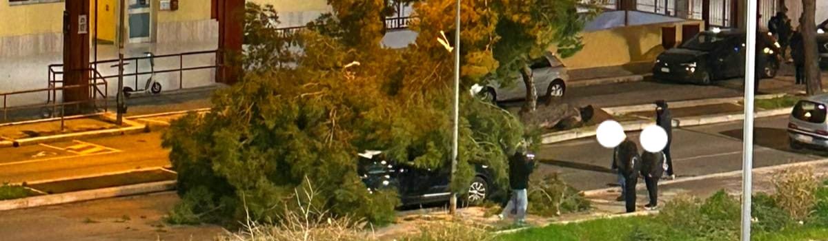 Bari, paura in via Carrante: albero crolla su auto parcheggiata
