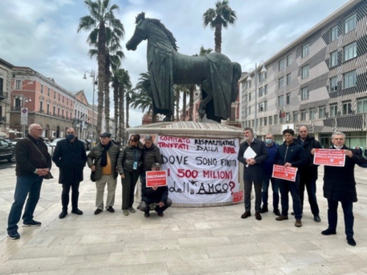 In una manifestazione di protesta che si è svolta stamattina a Bari con cartelli e striscioni, gli azionisti che si ritengono truffati dalla vecchia gestione dell’istituto di credito per aver acquistato anni fa azioni il cui valore è stato poi azzerato, chiedono anche di “concretizzare un intervento normativo per ristorare i soci dell’azzeramento del valore azionario, alla luce dell’ordine del giorno approvato in Senato nel corso della sessione di bilancio” che impegnava il Governo a valutare la possibilità dio istituire un fondo destinato al ristoro dei risparmiatori e soci della banca.