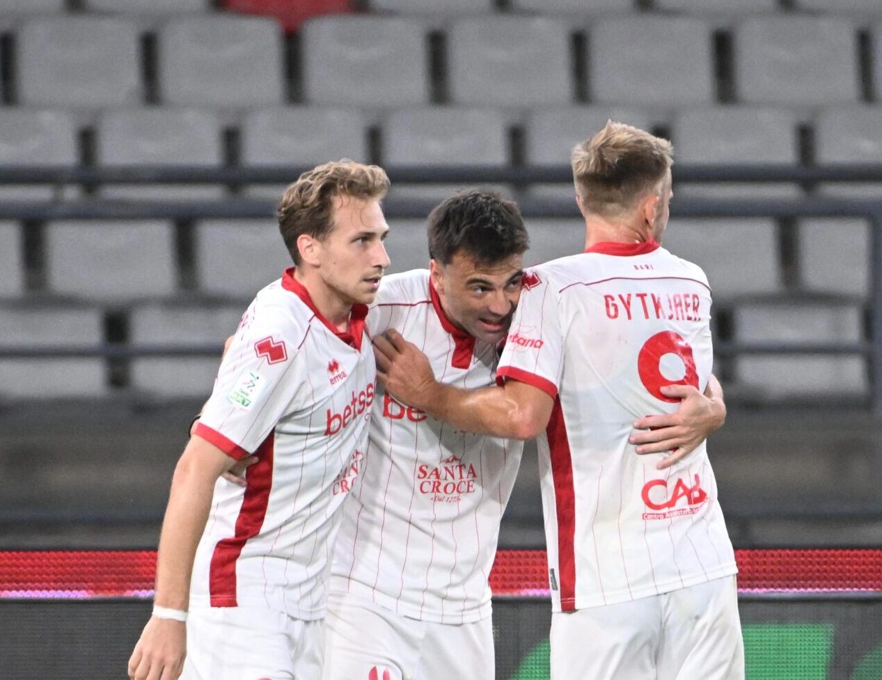Gli ospiti guidati dall’ex biancorosso Massimo Donati sbloccano il risultato al 28′ con la rete di Depaoli su un errore difensivo dei biancorossi. Pafundi bluffa Nikolaou e serve Depaoli che segna, con incredulità, il gol del vantaggio sfruttando la perdita di equilibrio di Meroni. Non tarda ad arrivare la risposta del Bari che al 31′ con una rete degna di nota di Moncini riporta la gara in una condizione di parità. Cross di Dickmann dalla fascia e rete di testa della punta biancorossa.