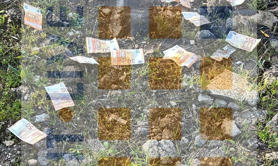 Parte del bottino dell’assalto avvenuto nella notte a Triggiano, dove una banda ha fatto saltare in aria lo sportello della banca BdM situata in corso Vittorio Emanuele, sarebbe stato perso dai malviventi durante la fuga e ritrovato sparpagliato in alcuni campi a Bari da alcuni agricoltori di passaggio, come testimoniato dalle banconote trovate (foto di Bit Live).