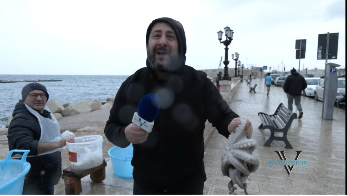 Freddo e pioggia non fermano gli arricciatori di polpi che sfidano le intemperie per la specialità barese.