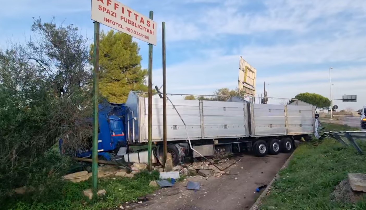 Bari, perde il controllo del camion e finisce fuori strada: incidente sulla provinciale per Bitritto