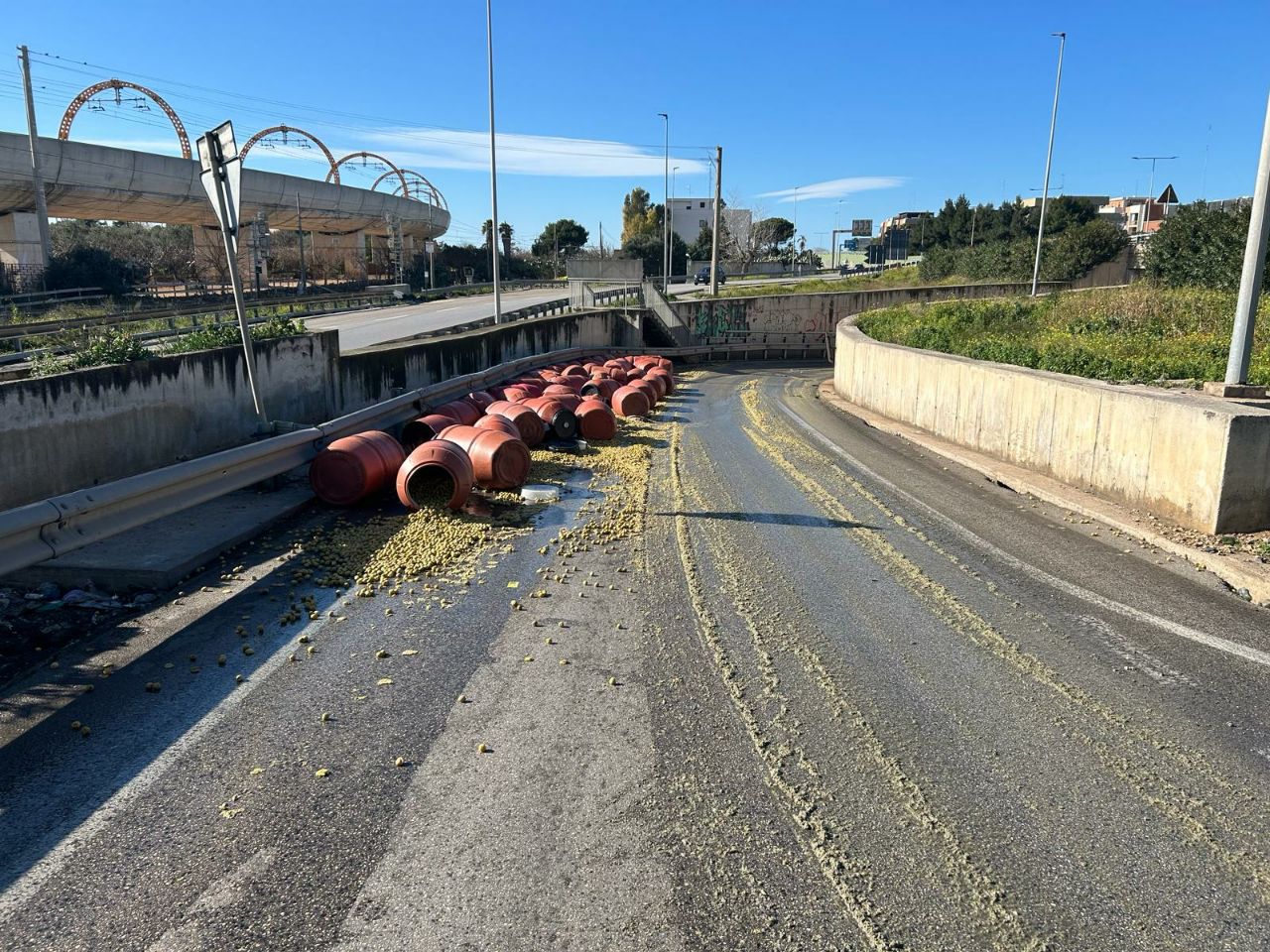 Bari, tir perde carico: chiuso sottopasso stradale. Disagi sulla ss16
