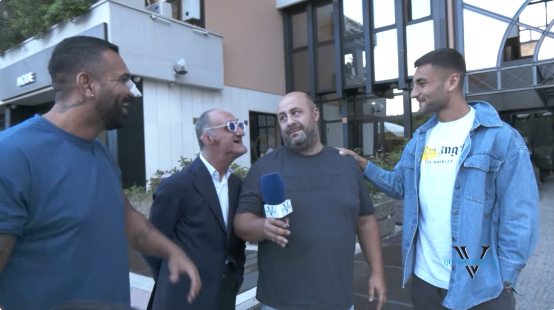 Silvio Sisto, Antonio Loconte, Cerino e Mattia Maita nello stesso posto contemporaneamente. L’ennesimo blitz a Poggiofranco di Quinto Potere alla ricerca del Bomber, dopo l’operazione al naso, si è trasformato in un vero e proprio incontro tra star.