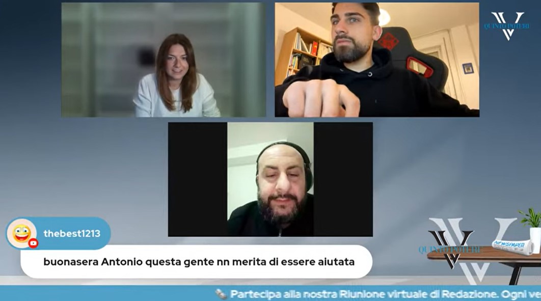 Durante la consueta live del venerdì sul canale Youtube di Quinto Potere, Antonio ha ricevuto una telefonata dalla mamma di due figli che su Facebook ci ha diffamato con un post pieno di menzogne.