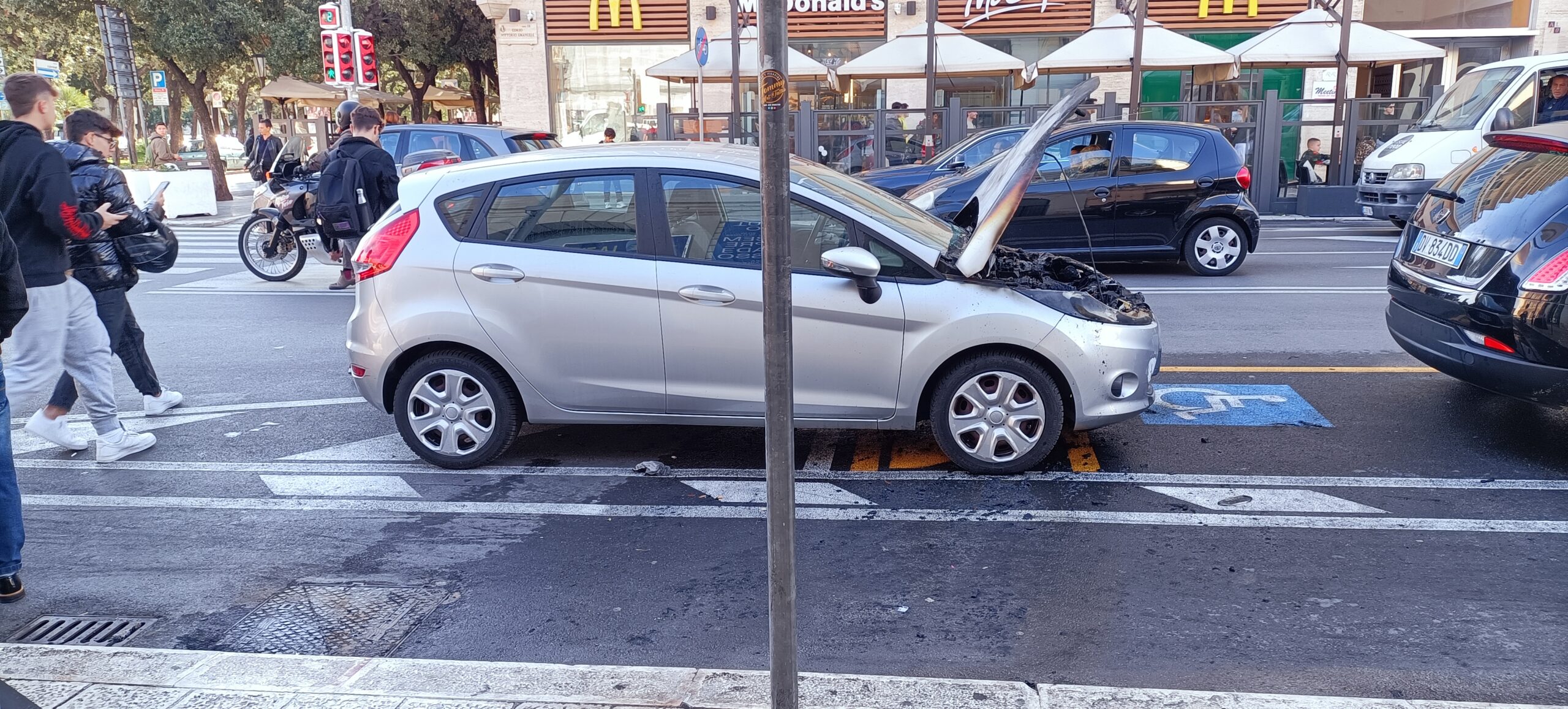 Auto in fiamme in corso Vittorio Emanuele a causa di un guasto tecnico.