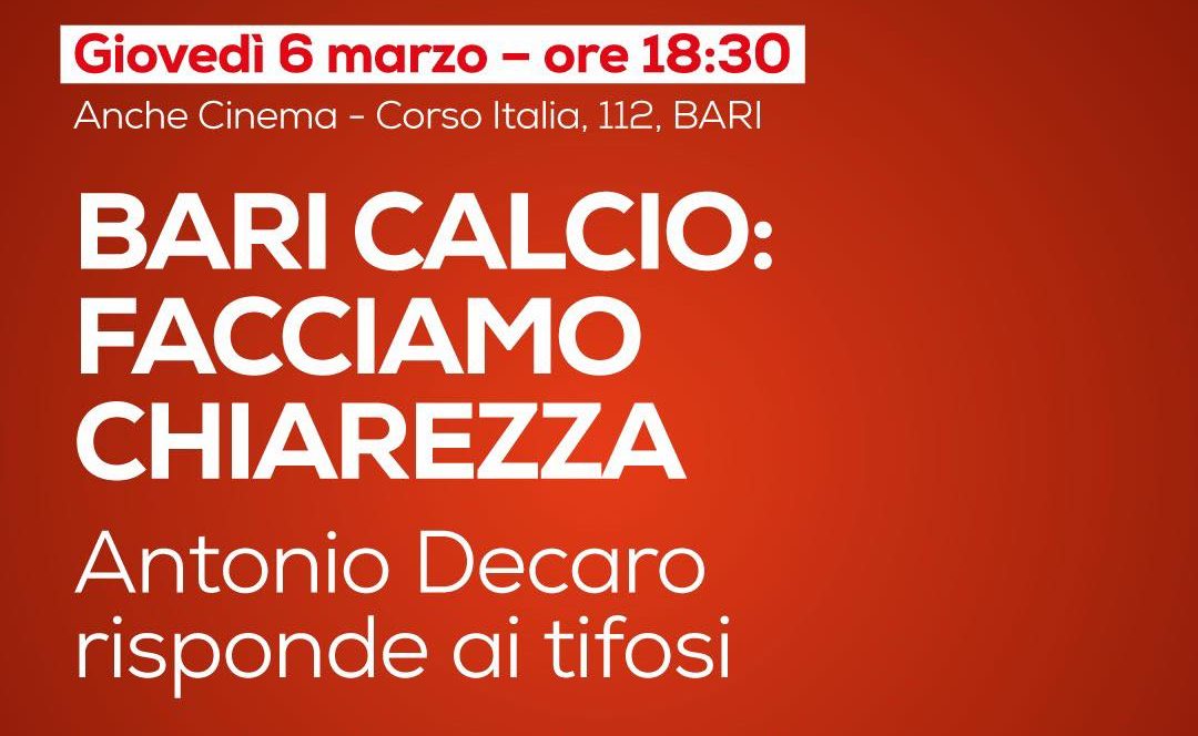 “Non sono qui a cercare scuse, quella è stata una scelta mia e mi prendo tutte le responsabilità”. Lo ha detto l’ex sindaco di Bari, Antonio Decaro, durante l’incontro con i tifosi della squadra biancorossa organizzato per fare chiarezza sulla multiproprietà del club, avviata nel 2018.