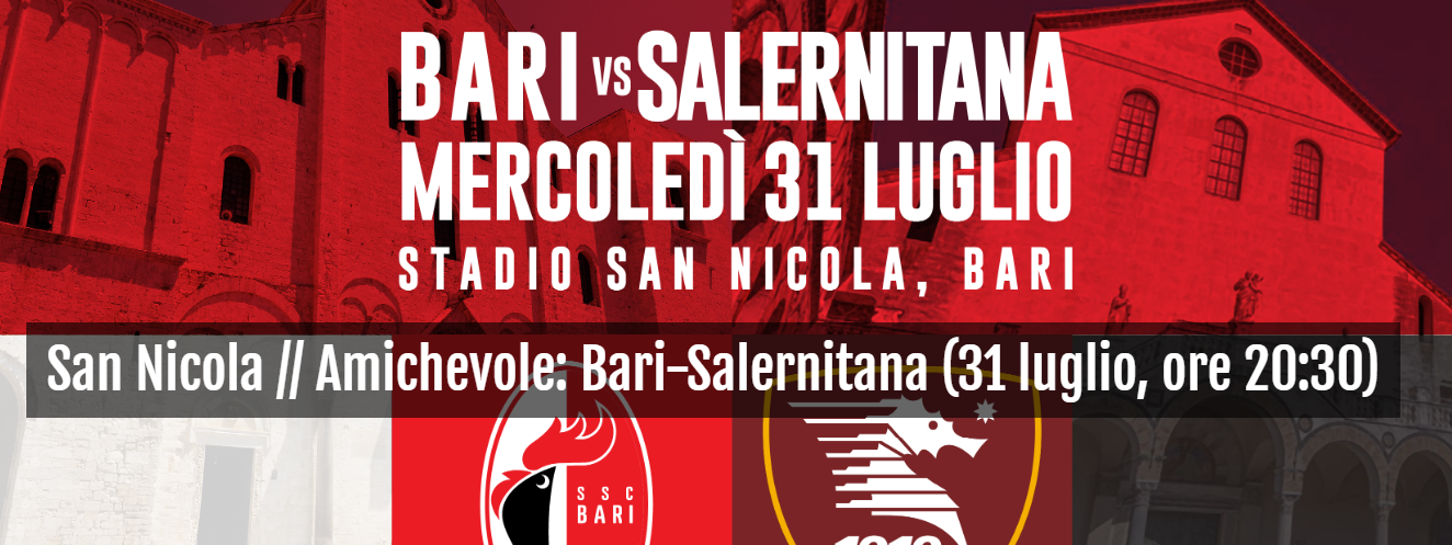 Ora è ufficiale. La sera di mercoledì 31 luglio, alle ore 20:30 al San Nicola, Bari e Salernitana si affronteranno in un match amichevole di preparazione alla prossima stagione. Nel prologo della sfida, a partire dalle ore 20:10, è in programma la cerimonia di tributo a Valerio Di Cesare, capitano che – dopo 235 partite in biancorosso, 21 reti e 2 campionati vinti – ha deciso di appendere le scarpette al chiodo per passare dietro la scrivania e operare al fianco del DS Giuseppe Magalini alla costruzione del nuovo Bari. Alle ore 20:10 è in programma il tributo a Valerio Di Cesare