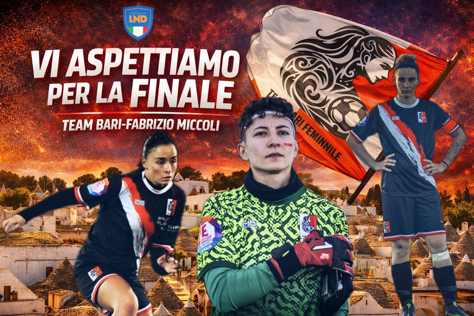 Domenica 15 febbraio, alle ore 15, il Team Bari Femminile scenderà in campo allo stadio comunale Ruggiero-Scanni di Alberobello per la finale di Coppa Italia – categoria Eccellenza – contro la Fabrizio Miccoli.
