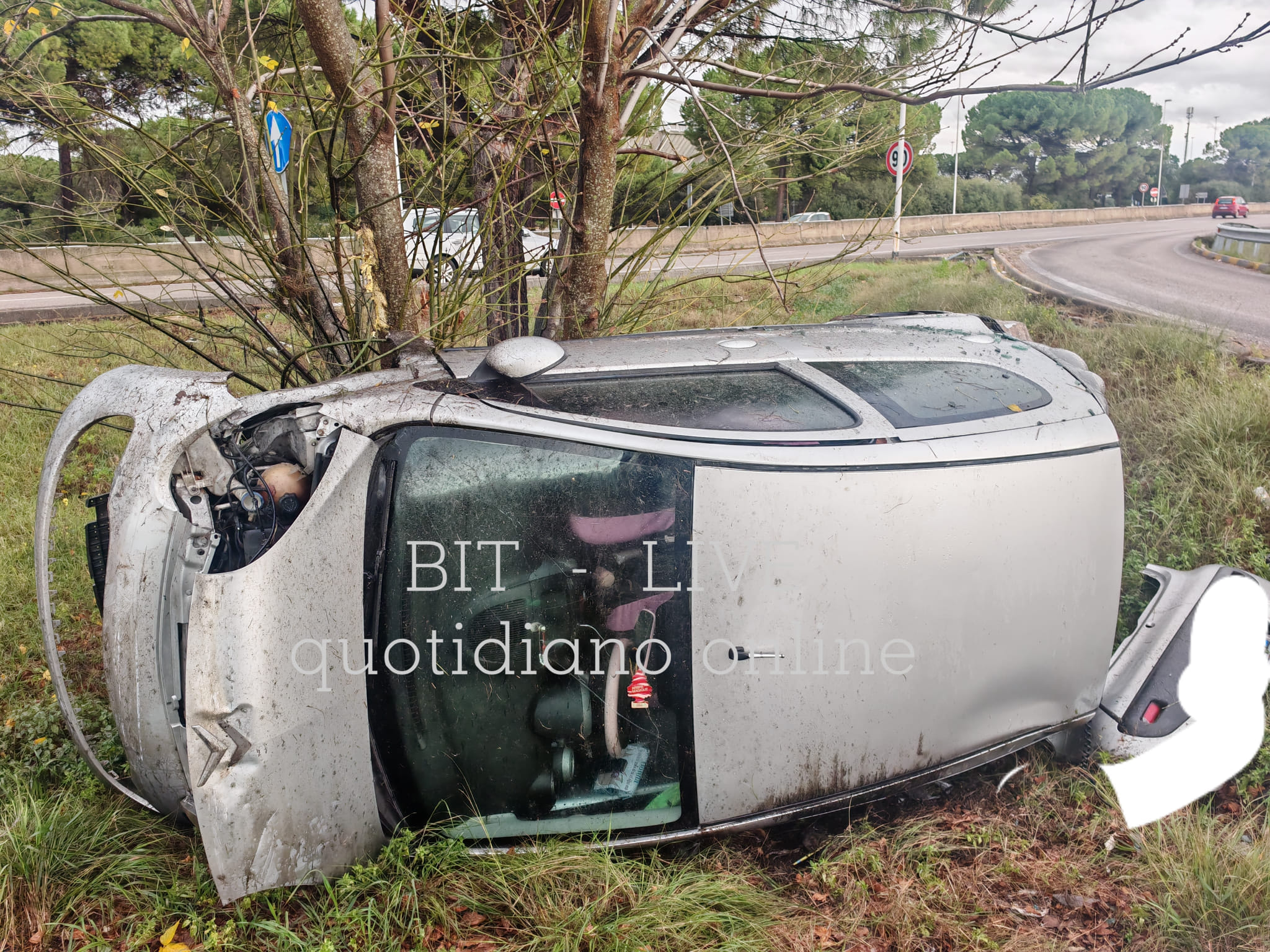 Bari, auto esce fuori strada sulla sp236. Si ribalta e finisce contro un albero: conducente miracolata – FOTO