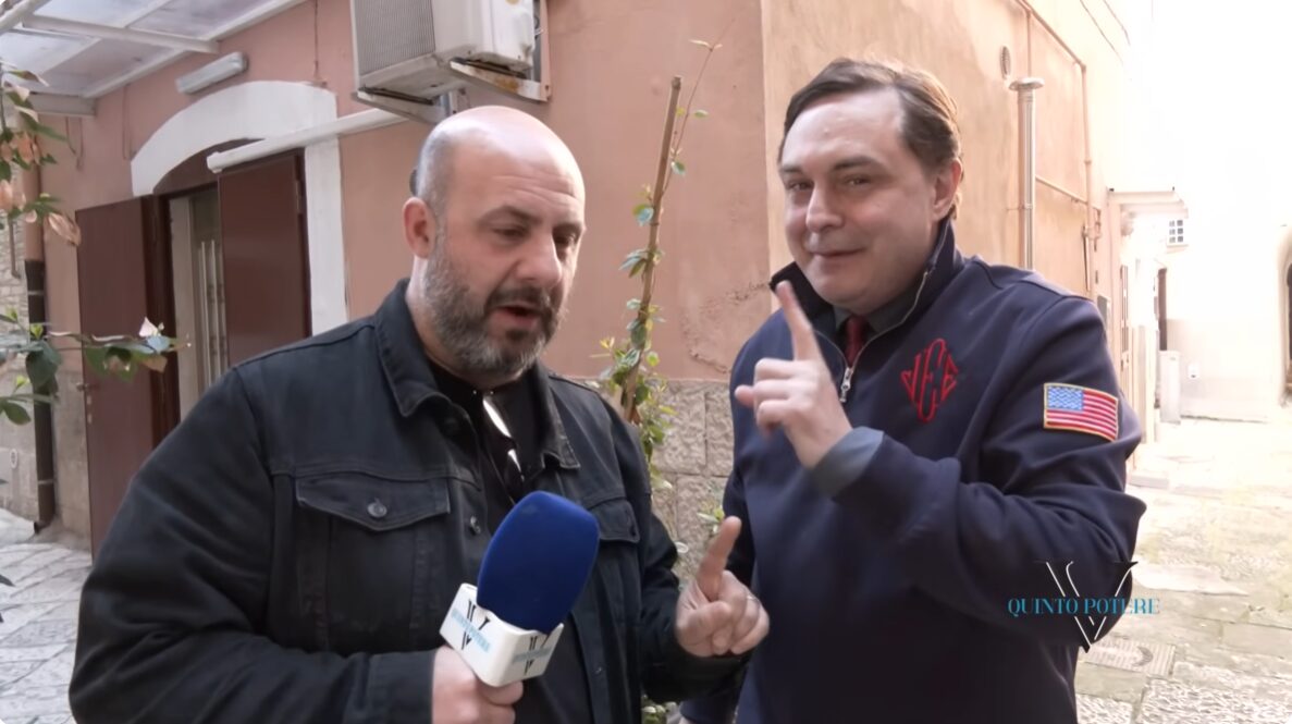 La presenza di Andrea Diprè, personaggio decisamente controverso del web, a Bari non è passata inosservata. Non solo lo abbiamo incontrato, ma Antonio e Tino sono riusciti, non sappiamo come, a registrare un’intervista. Diprè ha espresso stima verso l’operato di Quinto Potere, come accaduto già in passato in particolare su alcuni servizi diventati virali. A differenza nostra che abbiamo preso le distanze dal suo modo di essere e fare.