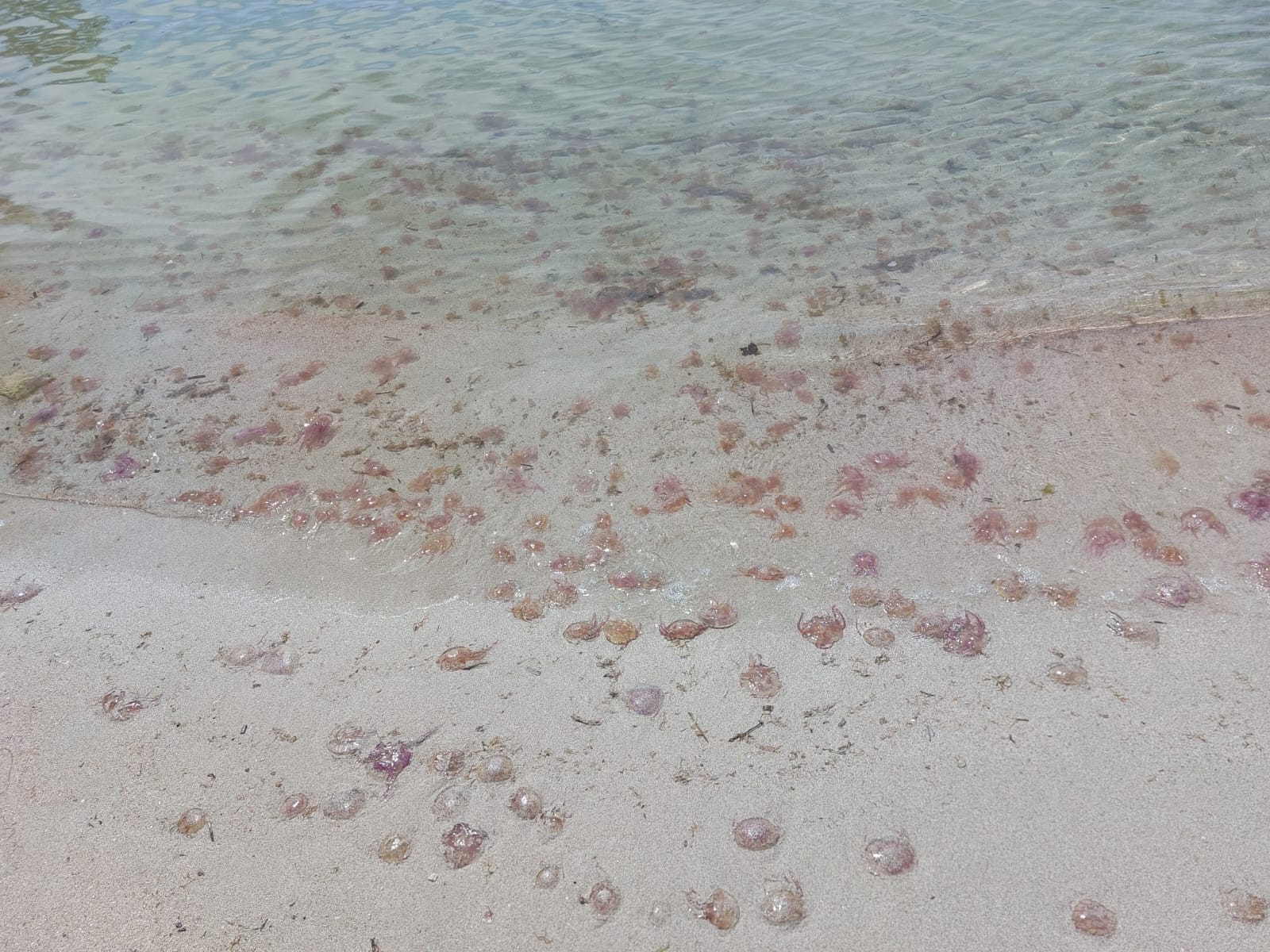 Una marea di meduse ha invaso la spiaggia di Leporano, rendendo impossibile l’accesso a mare.