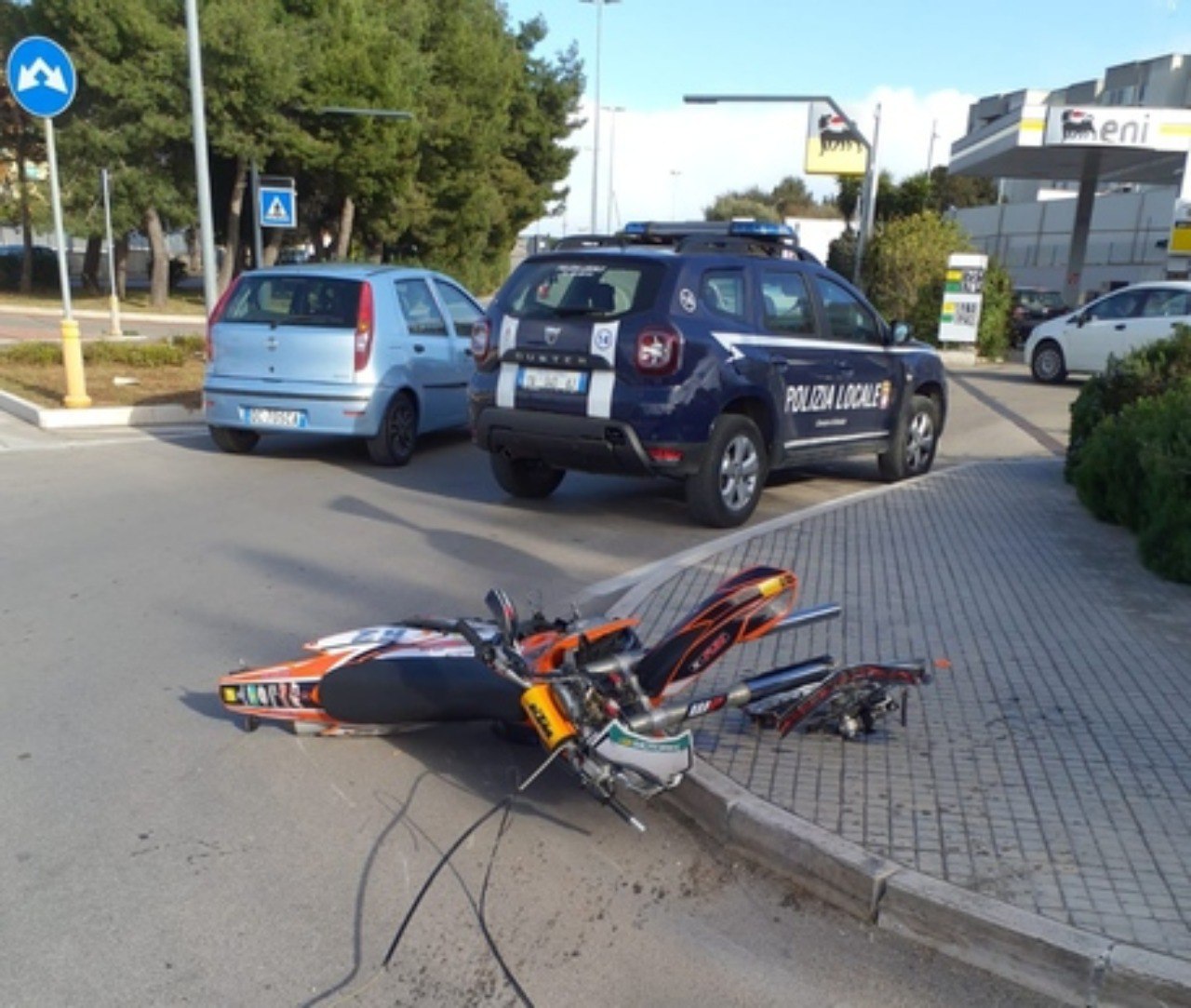 La moto, in seguito all’impatto, ha perso la ruota anteriore. Al momento non conosciamo la dinamica dell’incidente.