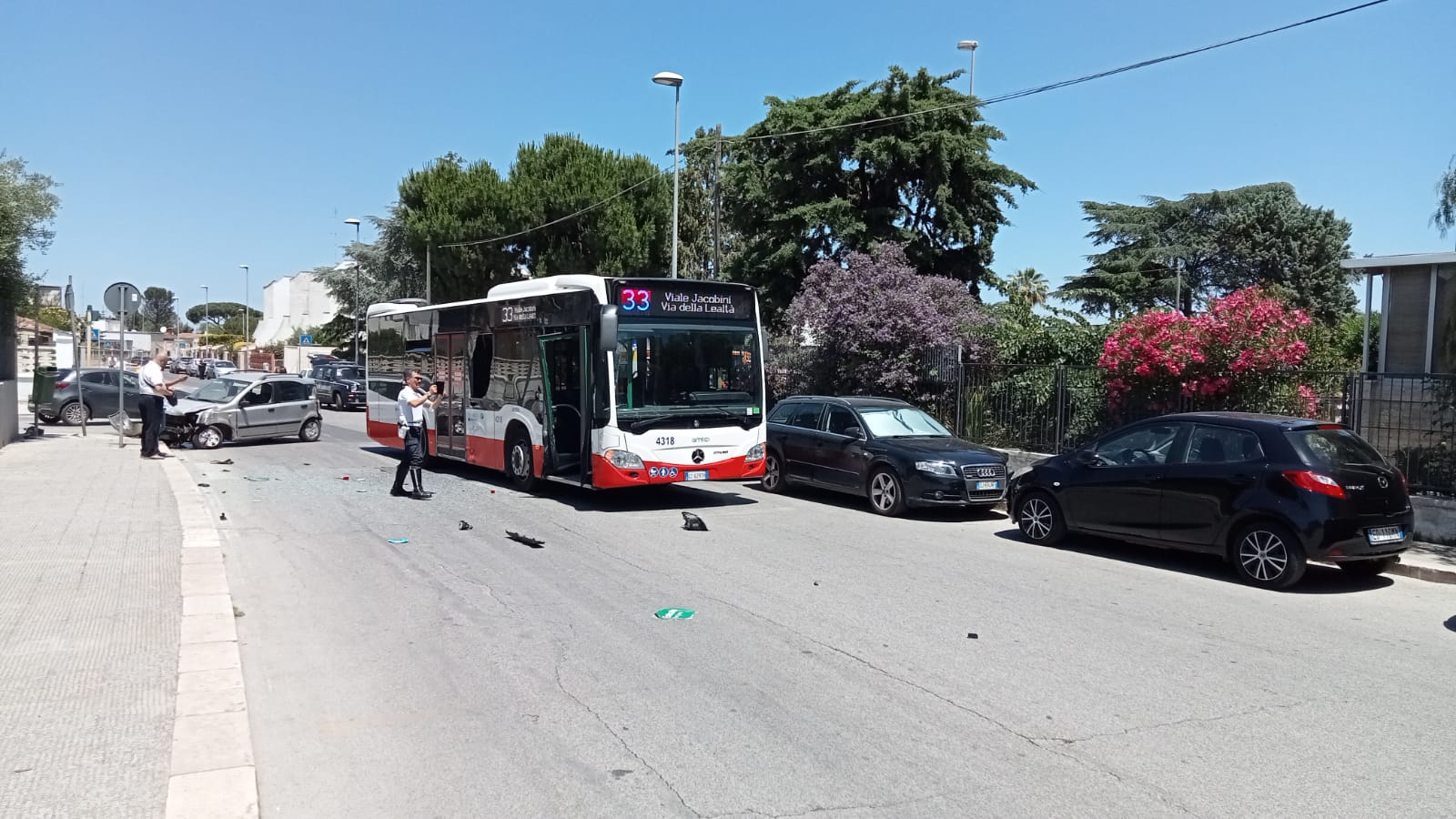 Per fortuna non ci sono feriti gravi. Solo una donna ha avuto un lieve malore. Sul posto due ambulanze del 118 e due pattuglie della Polizia Locale.