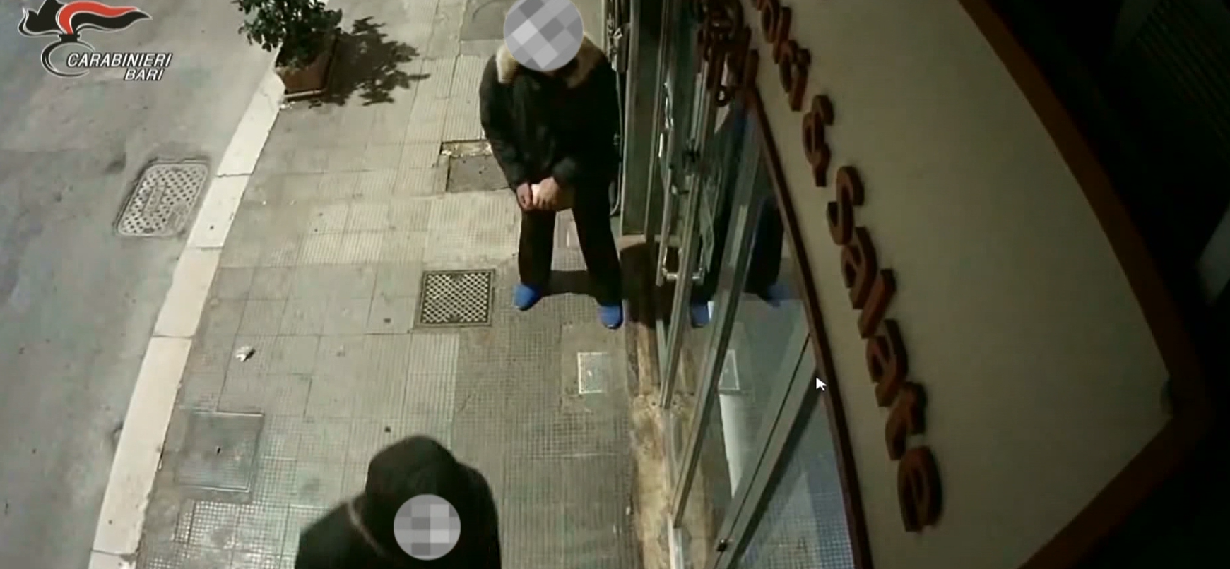 Dalla visione dei filmati si nota i due ladri forzare la porta a vetro con calci e spintoni, per poi infrangerla lanciandogli contro una grossa pietra. Entrati nel negozio, in pochi istanti, hanno trafugato il denaro custodito in cassa.