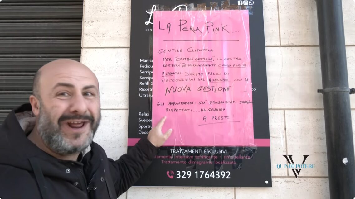 E proprio della Perla Pink torniamo a parlare dopo l’annuncio pubblicato sui social e su un cartellone sistemato all’esterno dell’attività. Il centro resterà chiuso fino al 7 gennaio e riaprirà l’8 con una “nuova gestione”. Tutto questo mentre Perrone ha fatto cadere in un sonno profondo tutti ed è sparito nel nulla, oppure no. Ha cercato infatti di farsi avanti, tramite vie traverse, per cercare di insabbiare tutto.
