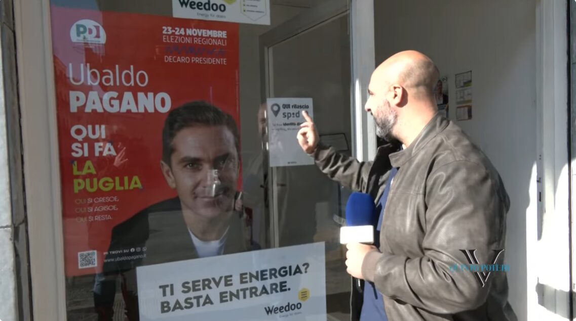 Nei Caf è assolutamente vietato fare propaganda elettorale, ma nel Barese a quanto pare si può fare. Abbiamo effettuato un blitz in uno di questi, pieno di manifesti e santini dell’onorevole Ubaldo Pagano. La nostra incursione ha colto tutti di sorpresa e subito c’è chi ha pensato bene di rimuovere il materiale. In vista delle prossime elezioni in programma il 23 e il 24 novembre in Puglia, consigliamo di votare il partito della pagnotta.