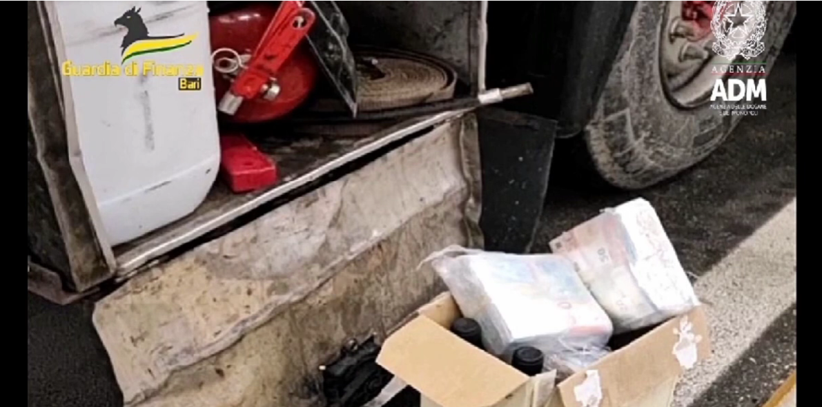 Stava per imbarcarsi dal porto di Bari verso l’Albania con ben 162.740 euro in contanti non dichiarati. Il conducente di un camion è stato però scoperto dai finanzieri del gruppo del capoluogo pugliese durante alcuni controlli effettuati con i funzionari dell’Agenzia delle dogane e dei monopoli (Adm). A insospettirli è stato l’atteggiamento irrequieto del conducente del camion che, documenti alla mano, doveva trasportare piastrelle e vino. I finanzieri e i funzionari dell’Adm hanno però deciso di approfondire il controllo con il supporto di un’unità cinofila anti-valuta, trovando una mazzetta di banconote per un valore complessivo di 10mila euro nascosta in un doppiofondo ricavato sotto il cambio del camion. In un cartone contenente bottiglie di vino posto in un vano portaoggetti, poi, sono stati trovati gli altri contanti. Gli operatori hanno sottoposto a sequestro amministrativo le banconote intercettate nella misura del 50% della somma eccedente il limite di 10.000 euro (in questo caso pari a 76.370 euro, recuperati all’Erario), per violazione della normativa valutaria con riguardo agli obblighi di dichiarazione doganale del trasporto di valuta.