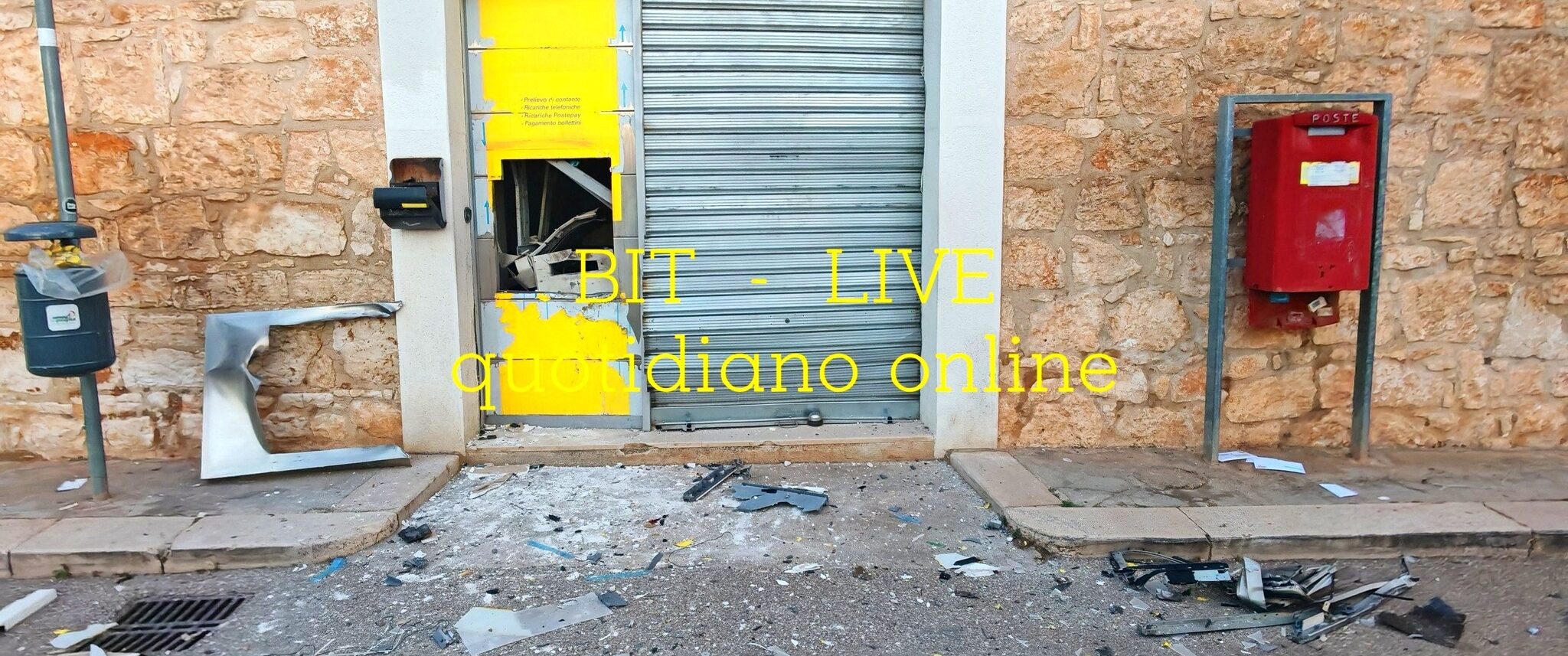 Assalto nella notte al Postamat di Cellamare situato in via Verdi, con ingenti danni anche alla struttura interna dell’edificio. I ladri sono riusciti a dileguarsi con il bottino prima dell’arrivo dei Carabinieri sul posto.