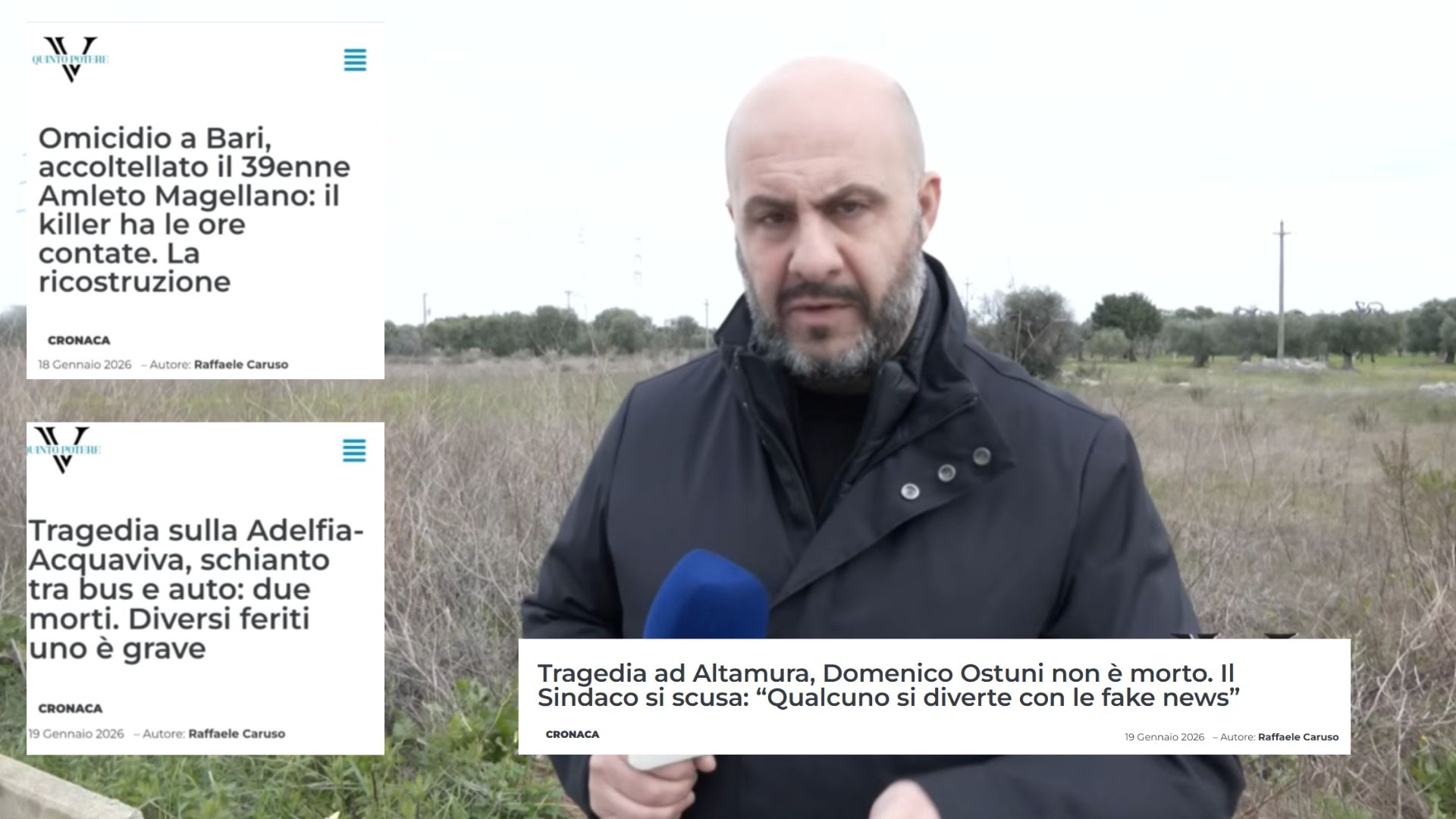 L’omicidio di Amleto Magellano e il tragico incidente stradale avvenuto ad Altamura dove hanno perso la vita i fratelli Antonio e Cecilia Bigi. Negli ultimi giorni, nel Barese, sono avvenuti drammatici episodi di cronaca. Come sempre Quinto Potere si è fatto trovare pronto e in prima linea per raccontare e documentare quanto accaduto.