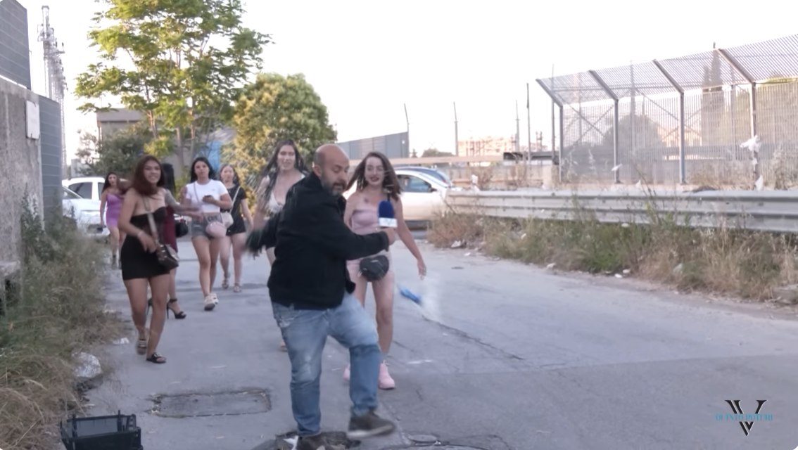Tra loro ci sarebbero anche ragazze minorenni. Ci siamo avvicinati a loro con il pretesto di invitarle ad una festa, dopo aver incassato il loro sì siamo tornati sul posto con la telecamera accesa. E qui è scoppiato il manicomio.