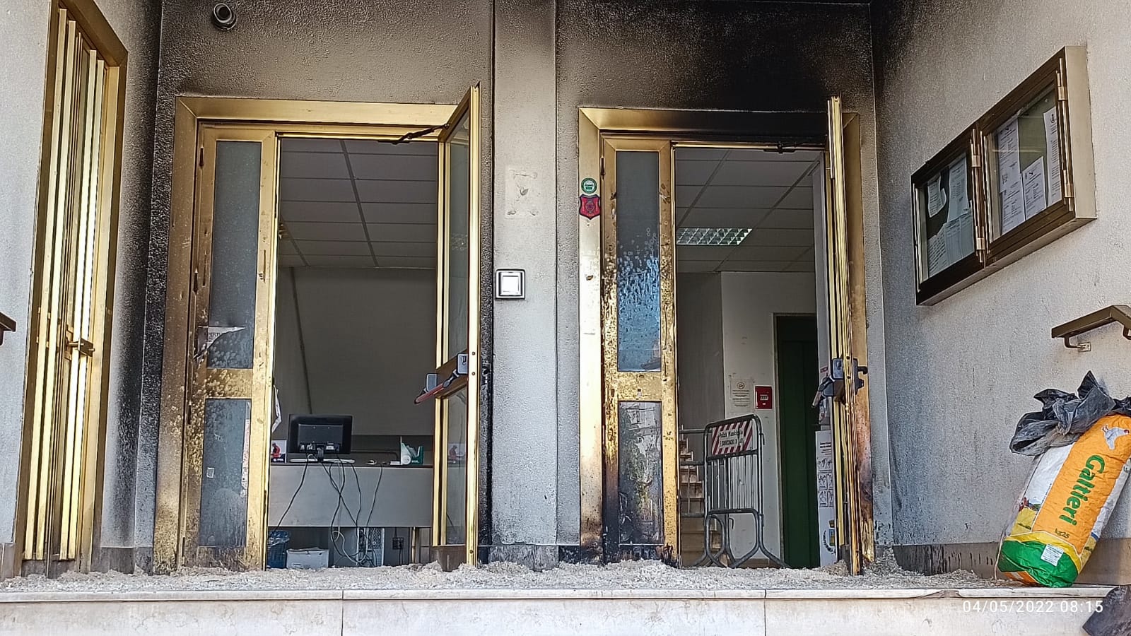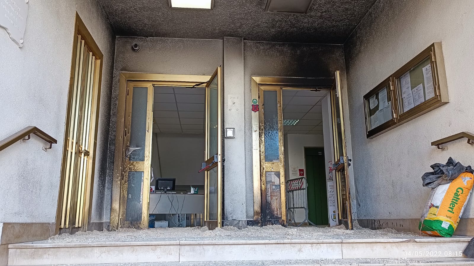 Davanti al portone del Comune l’uomo ha posizionato della spazzatura e poi è stato appiccato il fuoco.