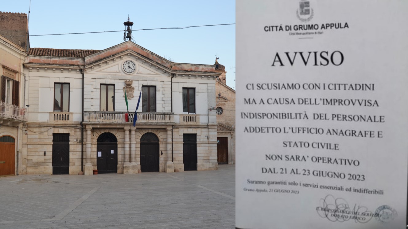 Si tratta dell’ufficio Anagrafe e Stato Civile. Prima per mancanza di personale, poi per malattia, l’ufficio comunale è quasi sempre chiuso.