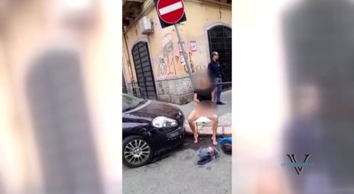 La donna è senza biancheria intima e chiede di poter urinare in mezzo alla strada. Una scena che a detta dei residenti si ripete spesso.