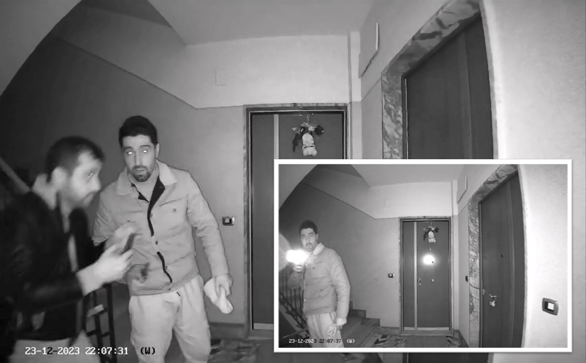 È accaduto la sera del 23 dicembre in viale Giovani XXIII. I due sono stati ripresi da uno spioncino digitale che entra in funzione ad ogni movimento.