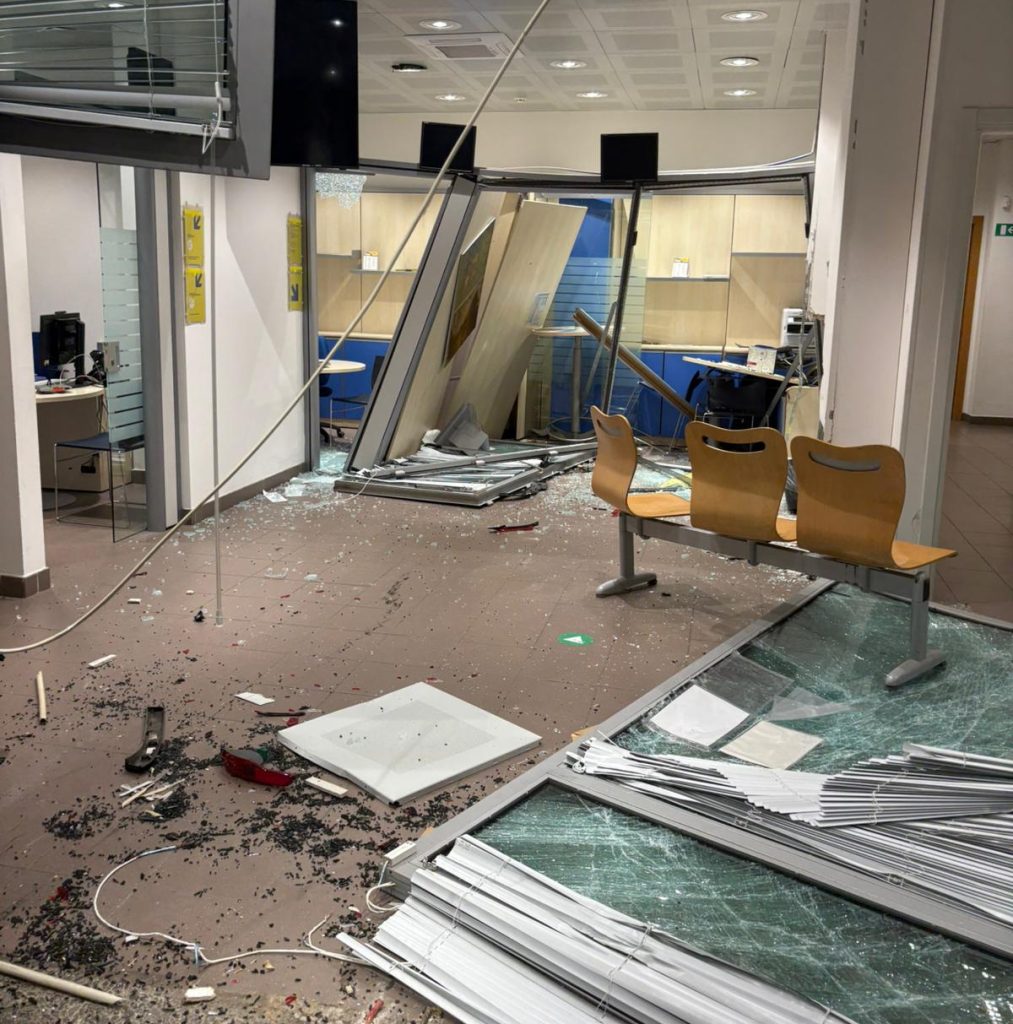 Resta chiuso questa mattina l’ufficio postale di Triggiano dopo il tentativo di rapina andato in scena ieri sera all’orario di chiusura. Resta in funzione solo lo sportello con una guardia giurata sul posto. Il colpo non è andato a buon fine, differentemente a come emerso in un primo momento, grazie all’intervento di una pattuglia della Polizia Locale. La strada è stata sbarrata e i malviventi si sono dati alla fuga a bordo di alcuni scooter. Nello scontro è rimasta ferita una vigilessa. All’interno i locali sono completamente distrutti. I rapinatori hanno posizionato delle travi sulla scalinata e le hanno usate come rampa per sfondare la vetrata di ingresso.