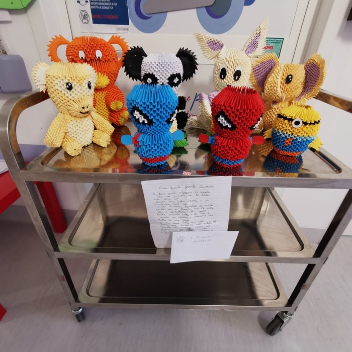 “Sono stato contattato da un detenuto della casa circondariale che mi riferito di avere un figlio malato di diabete e che voleva regalare un sorriso ad altri bambini che stanno affrontando un percorso di malattia. Ed è stato molto bello non solo che abbia realizzato Superman, Minnions e altri animaletti ma che lo abbia fatto con il solo obiettivo di donare gioia”, spiega don Raffaele. Gli origami sono diventati espressione di riscatto di un uomo prima che di un padre, che attende di saldare il suo debito con la giustizia per poter alleviare le giornate del suo bambino.