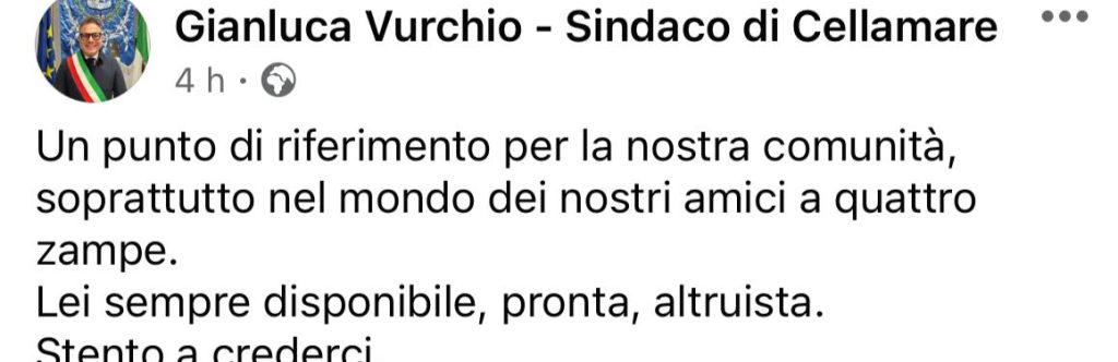 “Un punto di riferimento per la nostra comunità , soprattutto nel mondo dei nostri amici a quattro zampe. Lei sempre disponibile, pronta, altruista. Stento a crederci”. Inizia così il post pubblicato sui social dal sindaco di Cellamare, Gianluca Vurchio. Tutto il Paese piange Alessandra, trovata questa mattina senza vita dai parenti nel suo negozio di animali. Si tratterebbe di suicidio ma la salma resta a disposizione della medicina legale.