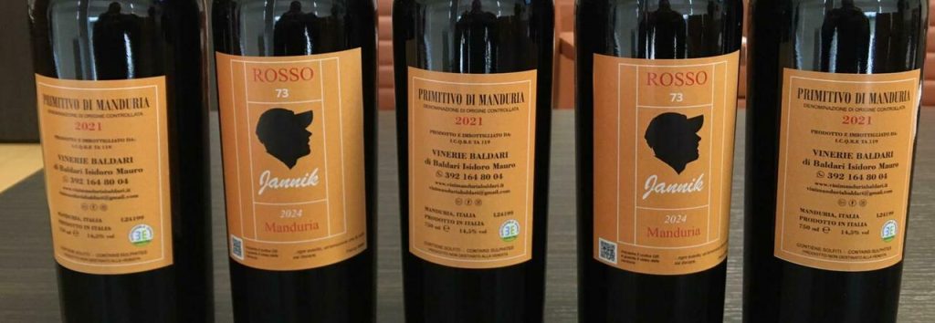“Rosso Jannik”, questo è il nome scelto del primitivo di Manduria prodotto e imbottigliato dalle vinerie Baldari in edizione speciale e limitata, non vendibile, in onore del tennista italiano. Il sindaco Gregorio Pecoraro ha inviato al collega di Sesto, Thomas Summerer, comune della Provincia autonoma di Bolzano dove risiede la famiglia del campione azzurro, 73 bottiglie, tante quante le vittorie ottenute fin qui dall’atleta.
